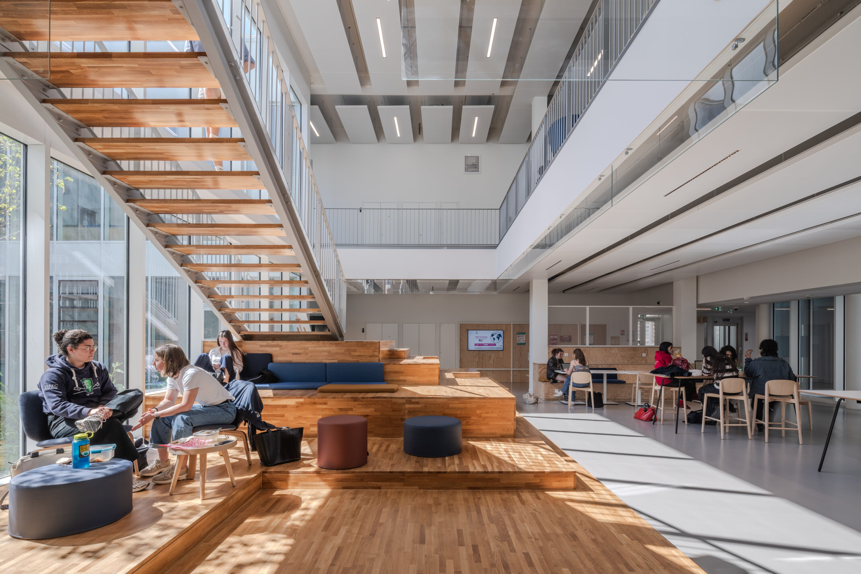 The ESSEC Campus project aims to highlight the pioneering spirit of one of France’s most prestigious business schools and to embody its core values: humanism, innovation, responsibility, excellence, and diversity. It enables the school to embrace the digital era and adapt to current academic practices as well as contemporary lifestyles and uses. The program addresses both the restructuring of operational strategies and the creation of new facilities to enhance the experience of the campus. The historic tower is transformed into the “Research Green Tower,” a demonstrative laboratory and an attractive symbol. The new “Center for Creative Learning,” a shared workspace, promotes the use of innovative pedagogical and technological tools. Finally, the establishment of a “Sports & Recreation Center” facilitates access to a variety of sports activities.