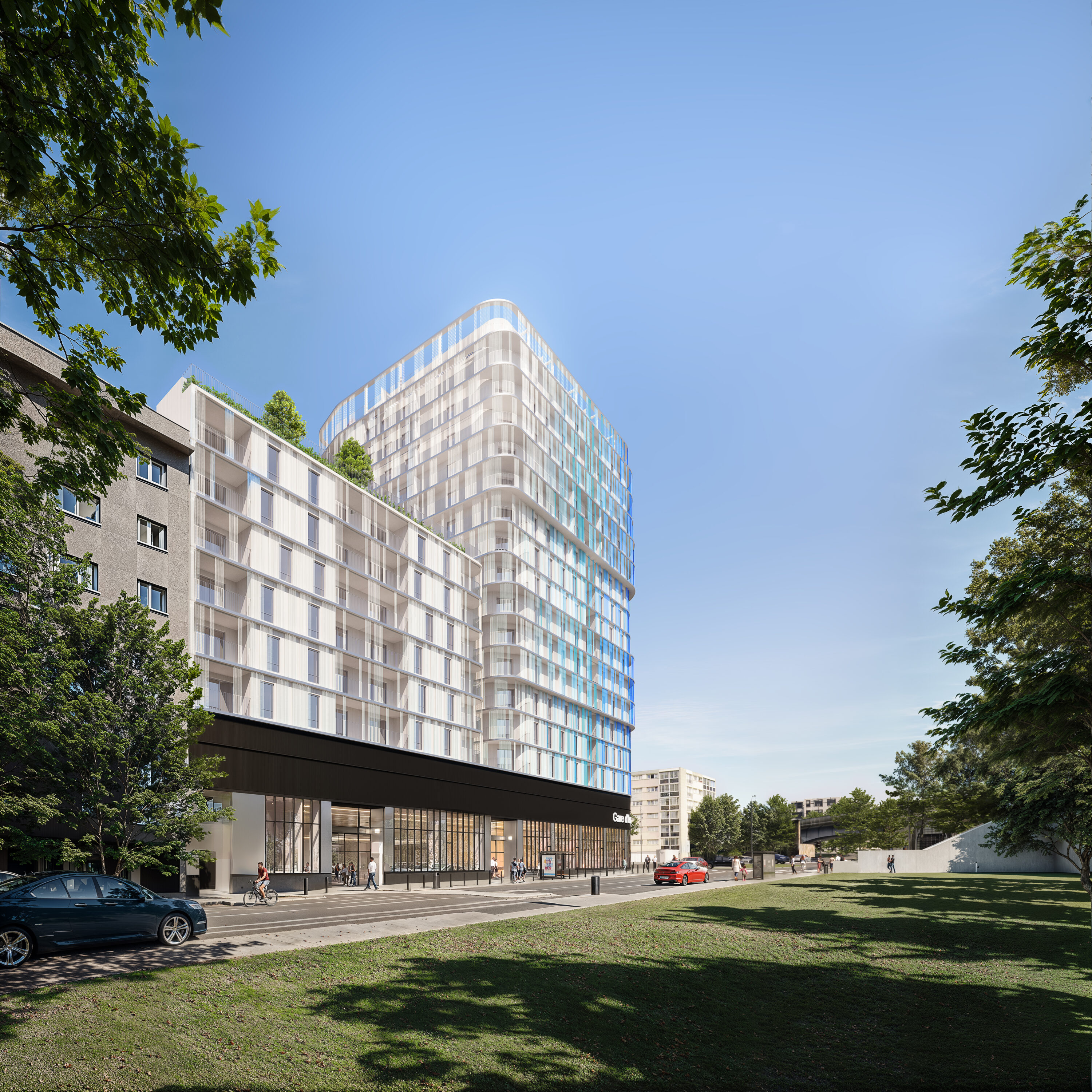 Rising above the future urban layout of the Issy-RER express station, the project stands out as the figurehead of a metropolitan island at the heart of a complex historical fabric.