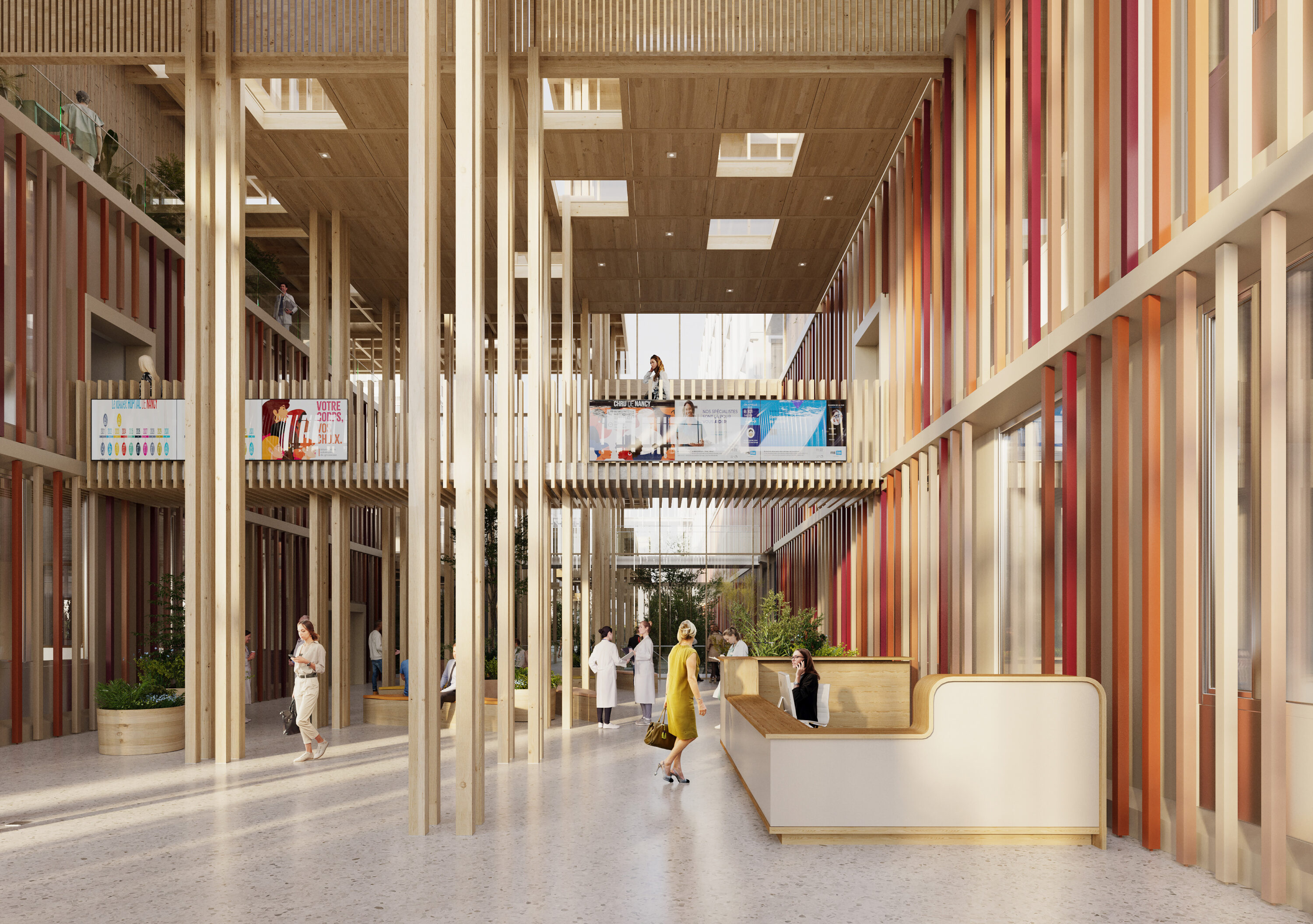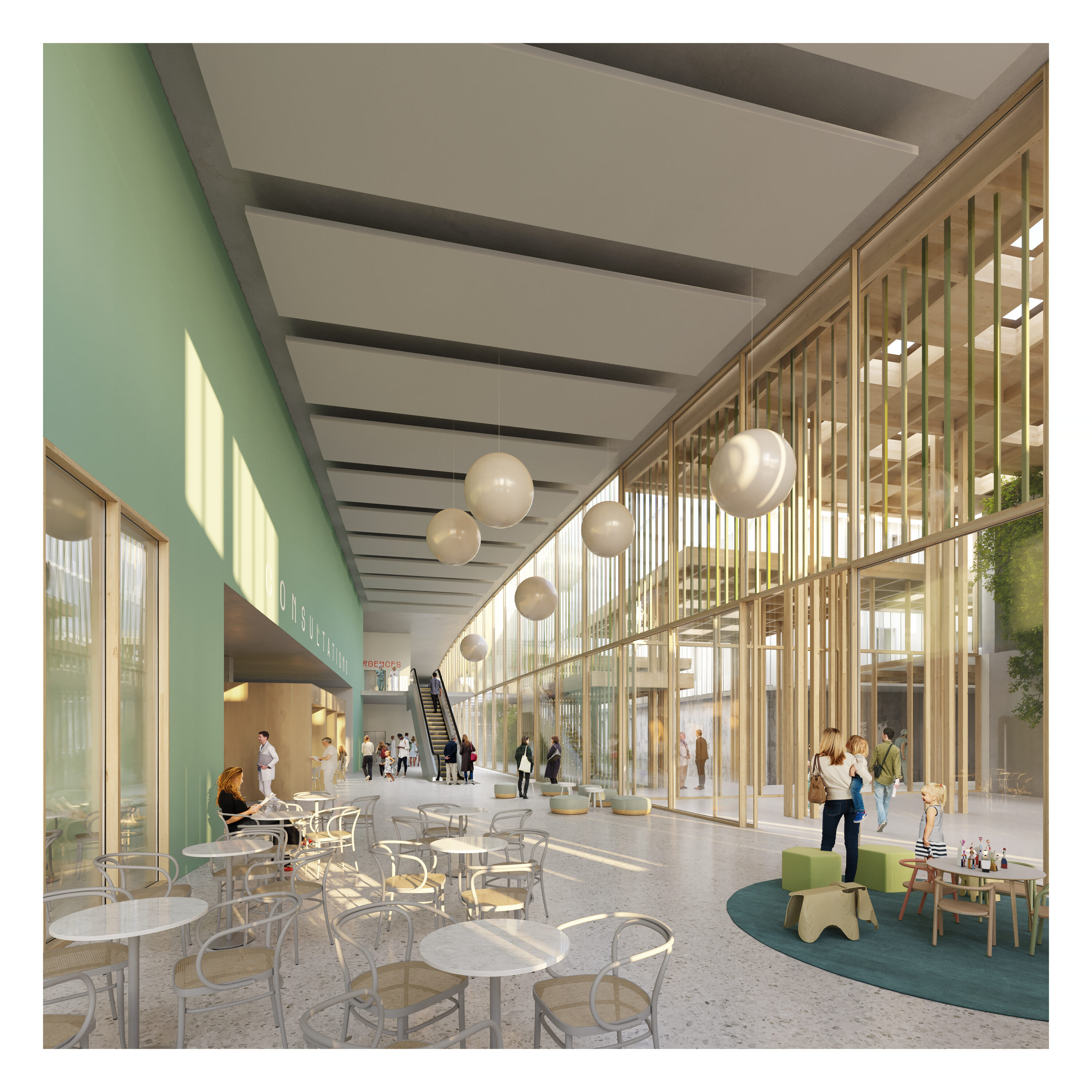 The three main hospitals will each benefit from separate entrances, reinforcing their individual identities while ensuring optimized, intuitive circulation. This compact spatial organization reduces journey times, thanks in particular to direct vertical connections, as in the case of ambulatory surgery, which has its own dedicated access from the main hall.