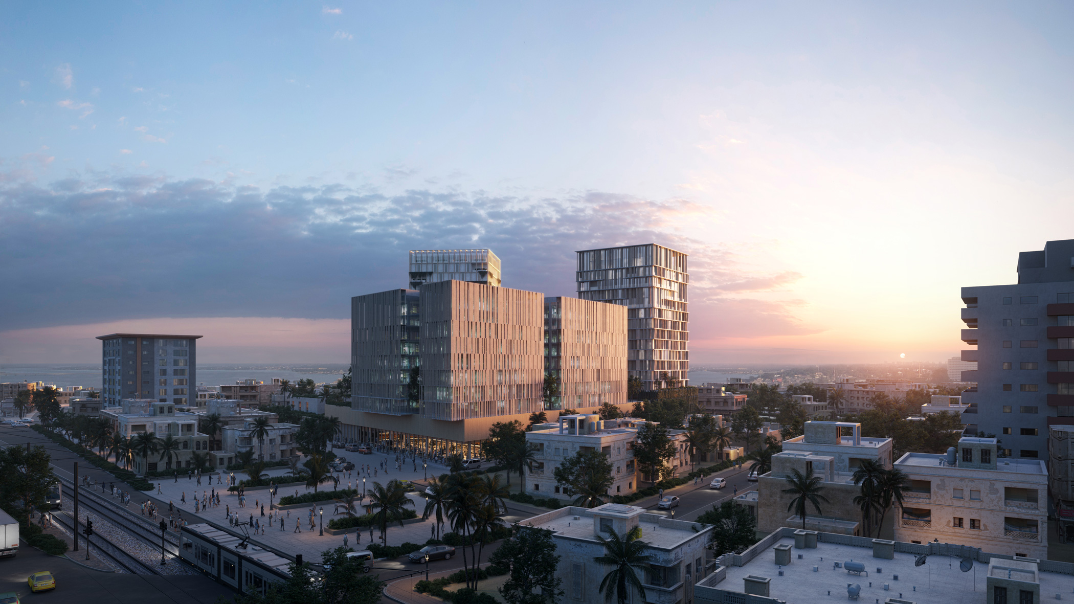 Ensemble urbain attractif et mixte comprenant un hôtel, des bureaux et des commerces implantés dans le cœur du quartier de Marcory à Abidjan, à proximité immédiate de la lagune.