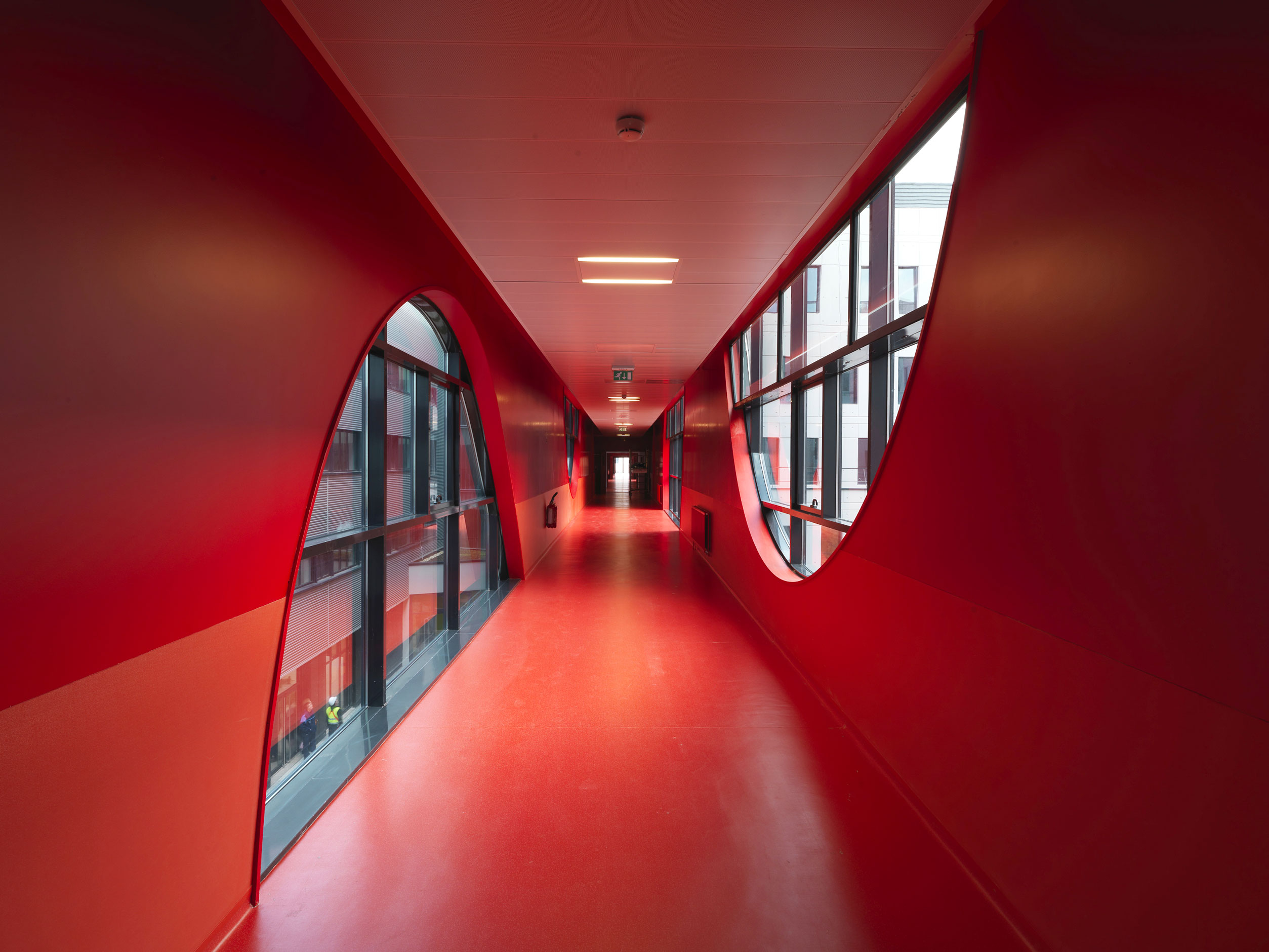Depuis l’accès au CHU sur l’Avenue de la Côte de Nacre à Caen, le nouveau pôle Femmes Mères Enfants Hématologie (FMEH) apparaît comme un signal. Il offre cette image forte, largement visible et identifiable, car il est conçu pour être la nouvelle entrée principale du CHU. Cette extension, d’une capacité de 345 lits, regroupe une unité de pédiatrie, une unité de gynécologie-obstétrique, une unité de néonatalogie, une unité d'hématologie, un bloc opératoire, une unité de néonatalogie et un service d’urgences pédiatriques.