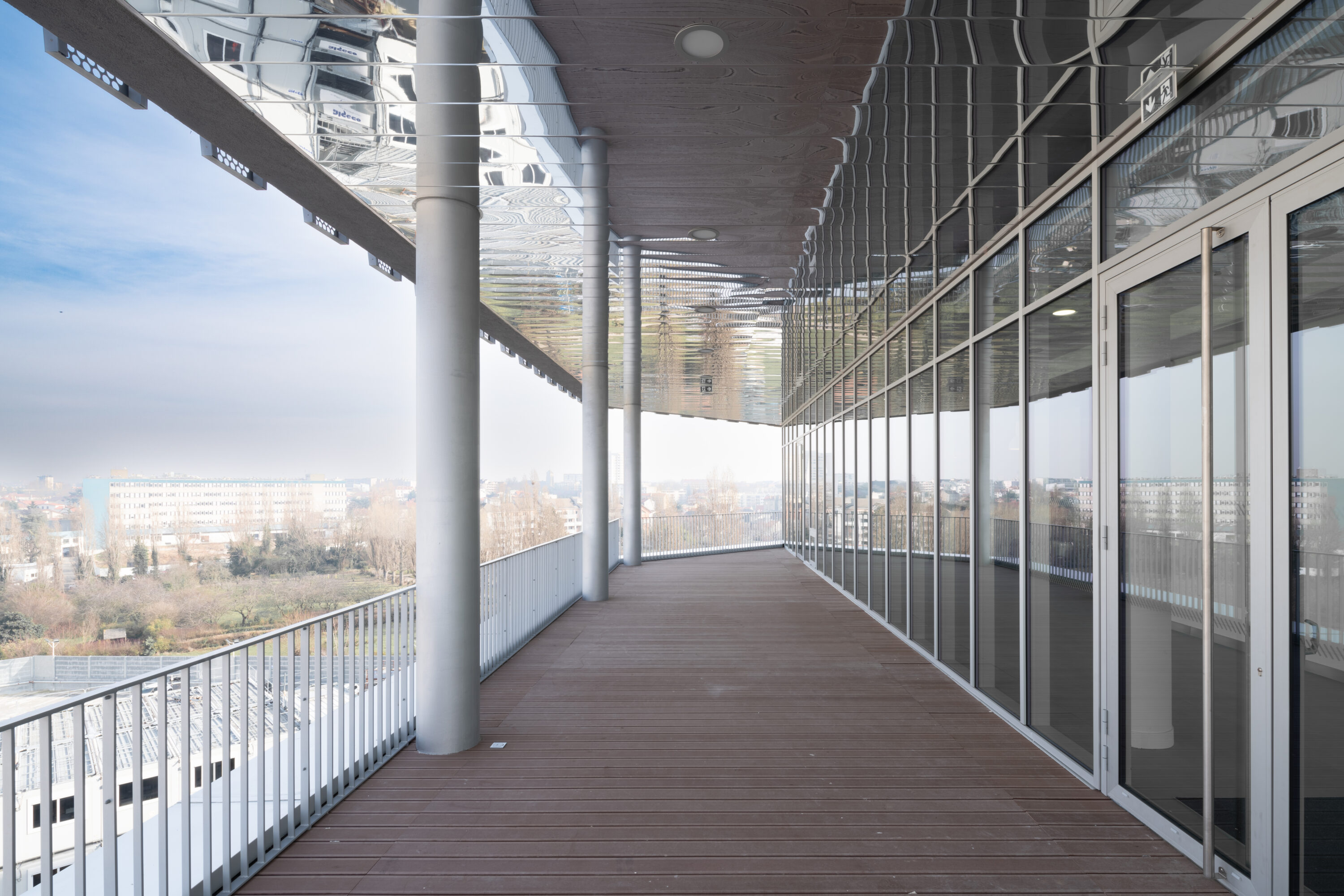 Le projet a pour but le regroupement de l’ensemble des services du Département du Val-De-Marne, jusqu’à présent répartis dans plusieurs lieux, dans un nouveau bâtiment tertiaire flexible et évolutif, agréable à vivre au quotidien. La trame optimale et fonctionnelle offre des espaces cloisonnés pouvant évoluer vers plus d’open-space. Son plan rationnel et créateur de liens valorise les nouveaux usages et les lieux de croisements et d’échanges notamment au moyen d’un potager partagé en prolongement de la grande terrasse associée au restaurant panoramique. La façade est traitée en double peau vibrante, dynamique et poétique, dans la finesse des lames métalliques qui ruissellent tout autour du bâtiment. Ce relief monochrome performant, est constituée de brises soleils pliés dont le mouvement, similaire à une onde, confère toute l’identité du bâti.