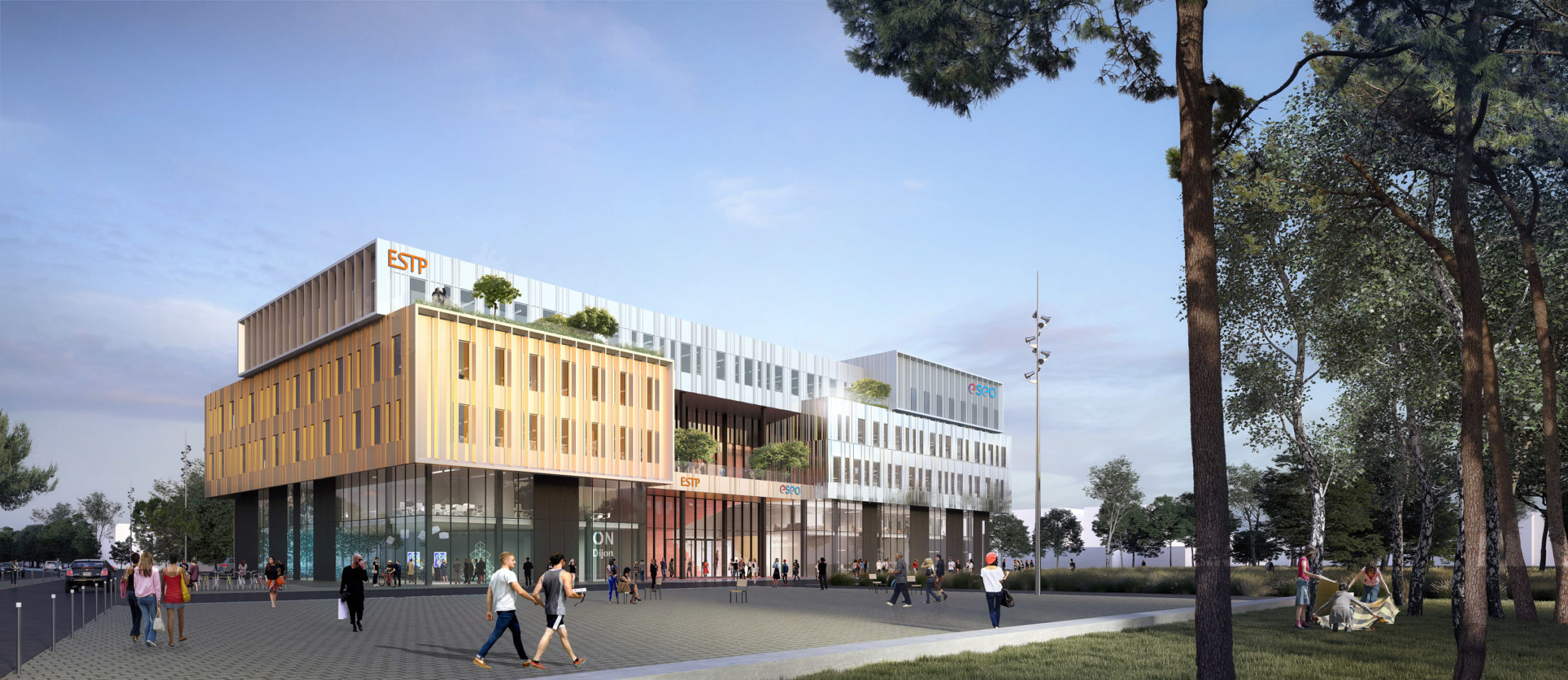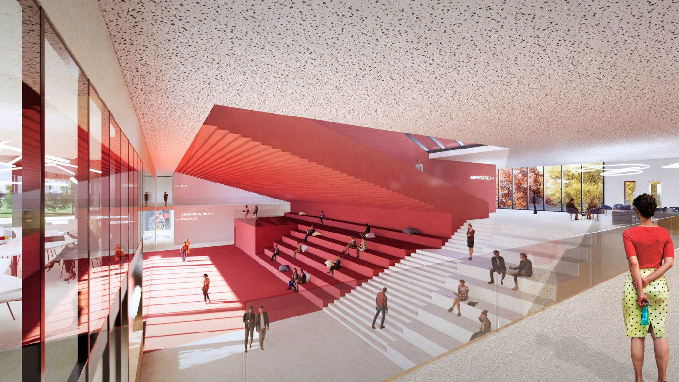 Ce nouveau lieu d’enseignement réunit deux écoles d’enseignement supérieur. Des tiers-lieux, dont notamment l’Atrium Scénique proposent de nouvelles pratiques pédagogiques, ils sont ouverts aux deux écoles ainsi qu’à des usages tiers. Ce « smart building » a vocation à interagir avec un contexte plus large de « Smart City » par l’ouverture de grands espaces communs mutualisés et du Show-room « On Dijon », grand projet numérique de la ville.