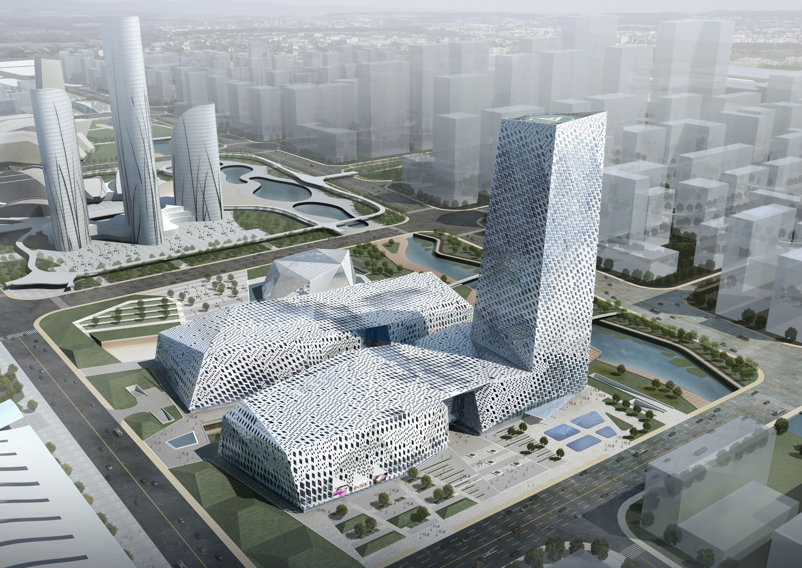 Conçu comme dispositif urbain innovant, le projet du centre culturel de Jinan regroupe une mixité d’usages et s’érige, grâce à une volumétrie qui se déplie autour de bijoux architecturaux, comme une figure du renouveau culturel de la ville.