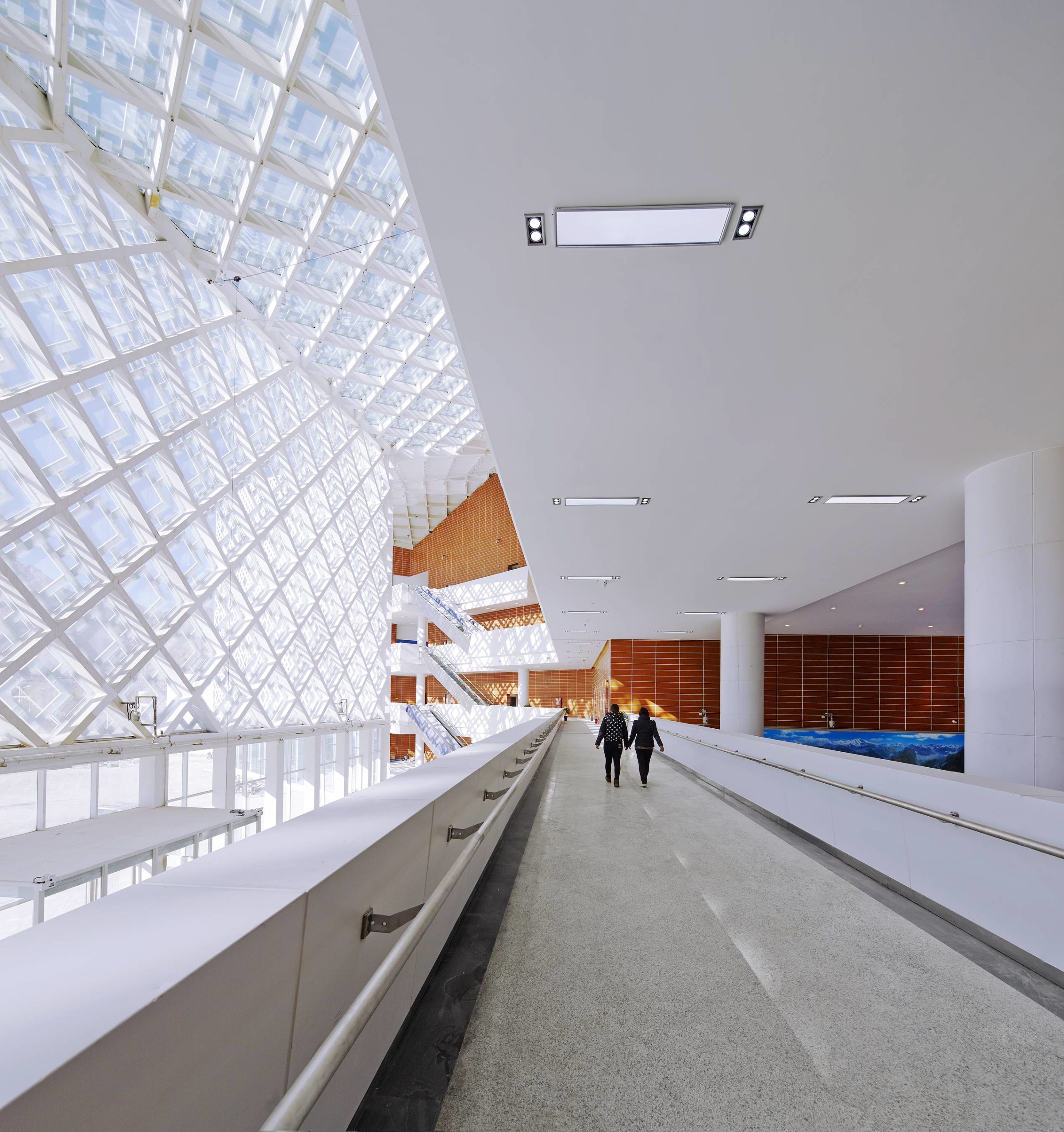 En toiture et en façade, les différentes épaisseurs des motifs de la résille permettent de filtrer le soleil afin de moduler la lumière et la température intérieure. Leur structure intègre des cellules photovoltaïques ainsi qu’un système de traitement et de récupération des eaux. Ce musée, destiné au plus grand monde, réunit en un lieu unique le passé, le présent et l’avenir et s’érige au milieu des montagnes comme le flambeau de la culture tibétaine.