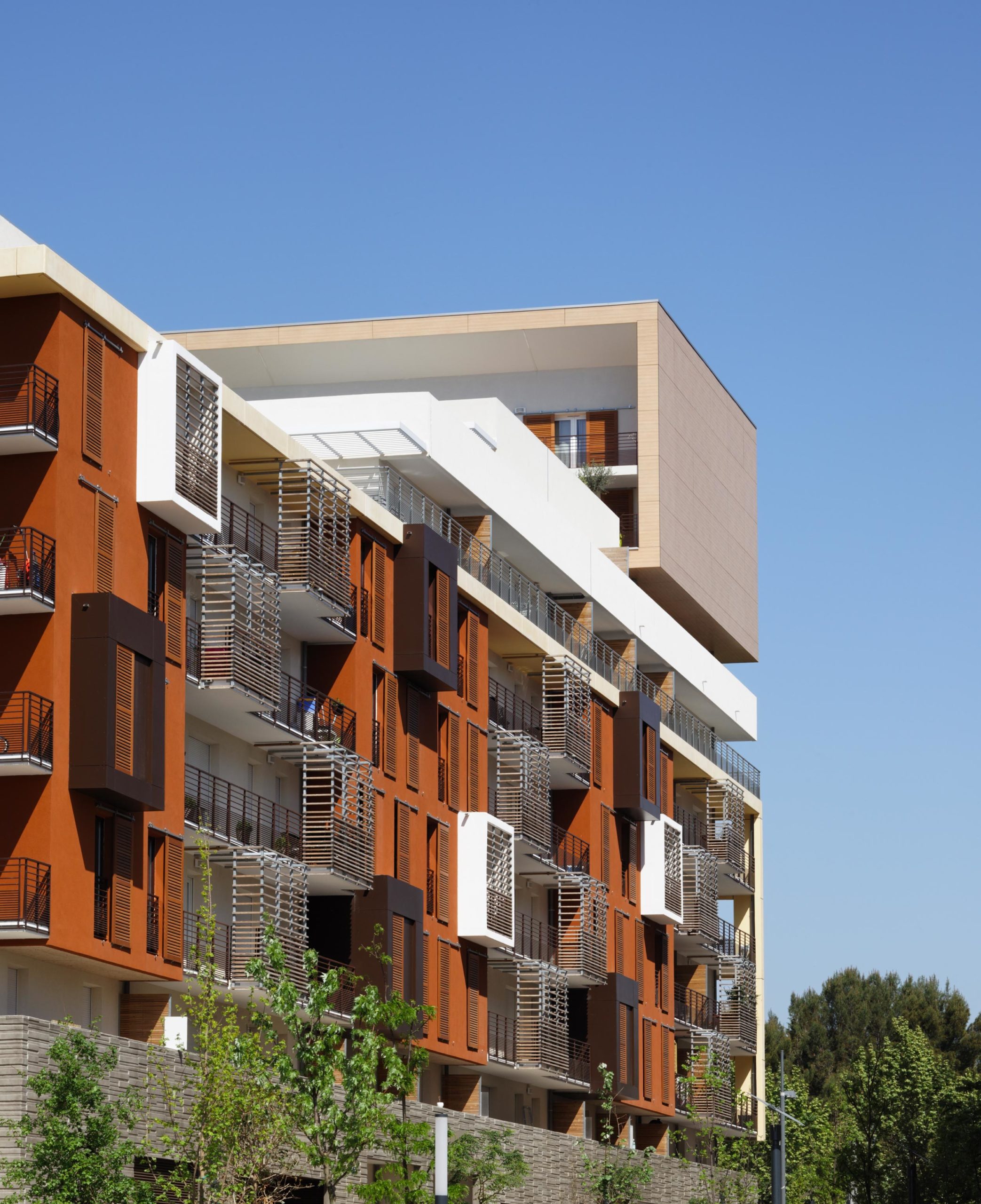 L’opération de logements constitue un élément fort de la ZAC Port Marianne grâce à un épanelage en gradins s’ouvrant largement sur le paysage et offrant de véritables pièces de vie extérieures aux habitants.