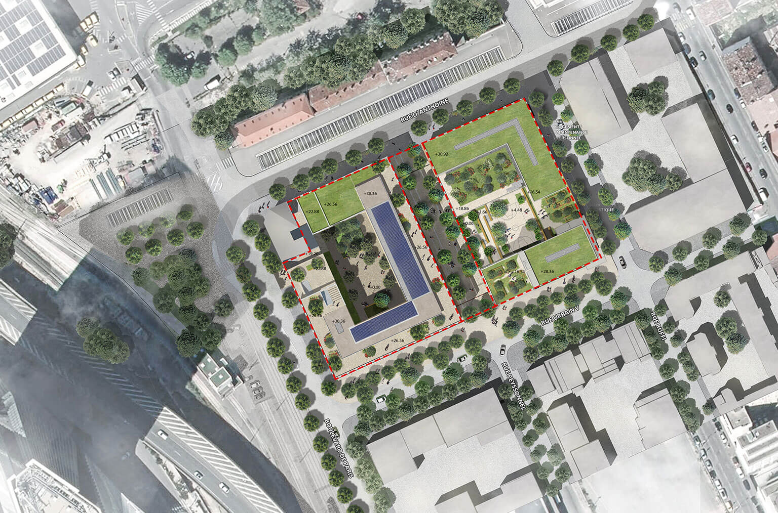 - Programme:Cité scolaire, enseignement élémentaire et secondaire, espaces extérieurs