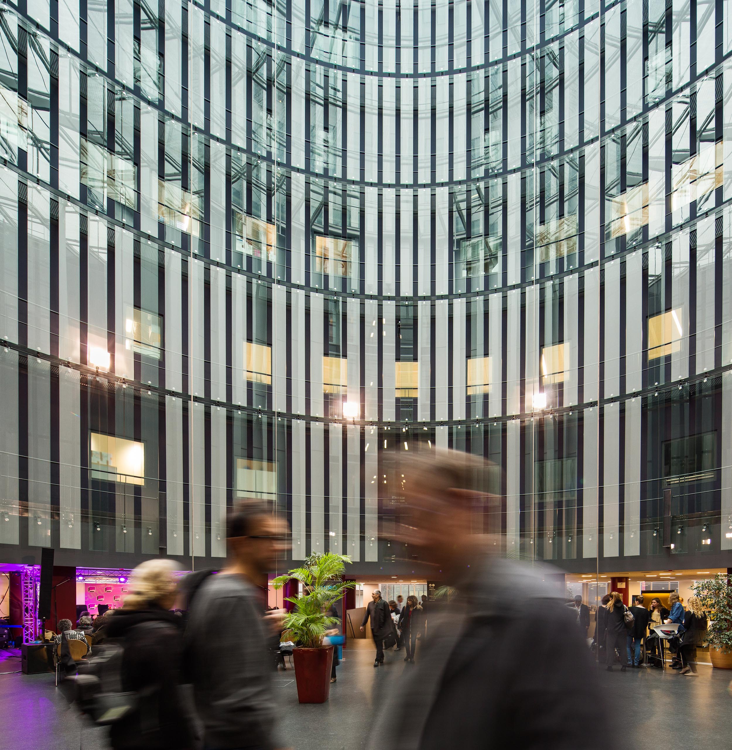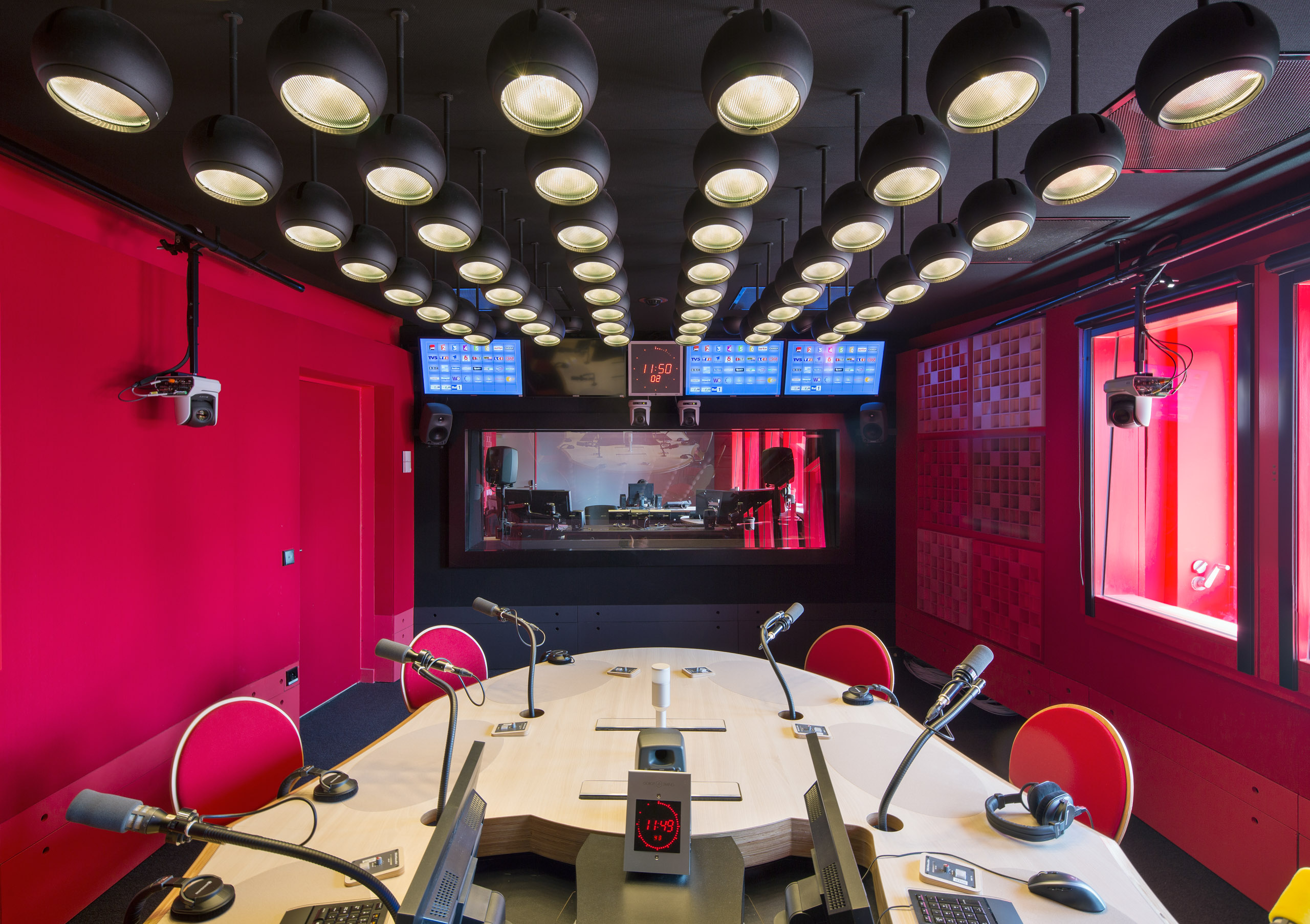 L’opération conserve les façades extérieures du bâtiment d’origine dans leur appréciation urbaine générale, et par là même le symbole qu’elles représentent, et s’attache à réunir les fonctions qu’elles contiennent. Une nouvelle agora se greffe à la tour originellement isolée au centre de l’édifice et la relie à la grande couronne au moyen d’une nef centrale et de quatre passerelles vitrées de 32 mètres de longueur au niveau du cinquième étage. Autrefois lieu des archives de Radio France, la tour est réaménagée en espaces de travail amples et spacieux grâce à la création de doubles hauteurs tous les deux niveaux, et conserve son rôle de totem dans la capitale. Les nouveaux studios de production et d’antenne s’orientent et s’ouvrent vers la ville, en périphérie extérieure de la grande couronne. Le fameux studio 104, d’une capacité de 840 places, est réhabilité en salle de concert polyvalente destinée à accueillir tous les types de musiques représentatifs de la programmation éclectique de Radio France. Le nouvel auditorium complète cette restructuration respectueuse de l’esprit du lieu et en fait un bâtiment destiné à l’usage de l’ensemble des Français.