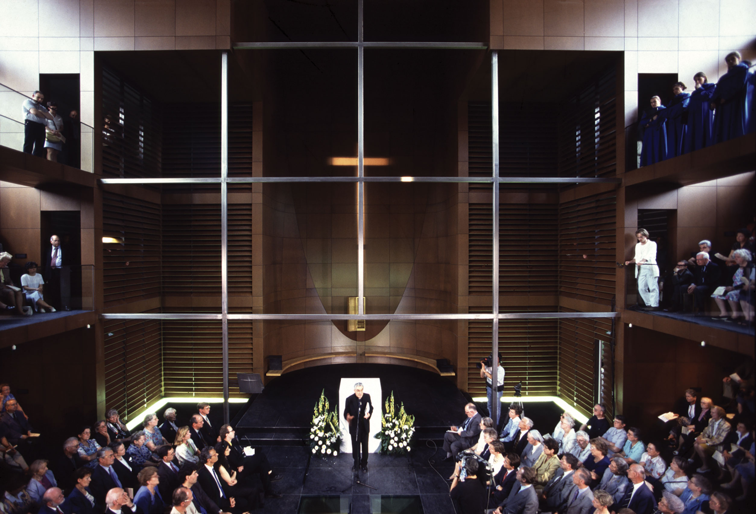 Conçue selon la symbolique liturgique et historique de la religion qu’elle abrite, l’Église Notre Dame de l’Arche Alliance s’érige comme un cube parfait protégé par une résille tridimensionnelle.